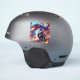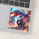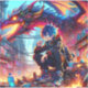 Un niño de anime con ojos azules con su dragón en una ciudad abandonada en un mundo distópico.