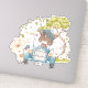 Práctico para el vivero, suministros para bebés y papelería, este lindo gato conduce un diseño de auto vintage con vegetación y flores.