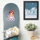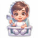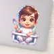 Personalizado amable de un niño de cabello marrón y ojos marrones sentado en una silla con una cuchara. Adorable pegatina.