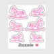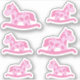 Caballo Rocoso Rosa Cute Dibuja A Niños Pegatinas. El diseño tiene juguetes de mecedoras rosas.