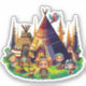 Pegatina Niños indígenas americanos indios, tipis y animale