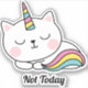 No hoy Pegatina de la Universidad - En esos días cuando es mejor no preguntar. Todos los tenemos y la estrella de nuestra tienda Unicorn sabe cómo transmitir el mensaje. Que todo el mundo vea su humor y su gusto funky con nuestro Pegatina Not Today Cute Unikitty. "¡Meowgical!" La redacción sobre el pegatina se puede personalizar a cualquier frase que desee.