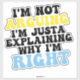 ¡Hagan su punto fuerte y claro (con un lado del humor) con este audaz e ingenioso pegatina! Con la frase "No estoy discutiendo, solamente estoy explicando por qué tengo razón" en llamativos tipos de letra amarillos, negros y azules estilo burbuja, este pegatina es perfecto para cualquiera que ame el sarcasmo y la confianza. Ideal para portátiles, botellas de agua, ordenadores portátiles, o en cualquier lugar en el que quieras presumir de tu lado acogedor. Este pegatina, hecho con materiales de alta calidad y a prueba de agua, es duradero y duradero, lo que lo convierte en un divertido y práctico complemento de su colección. Disponible en varios tamaños para adaptarse a su estilo.