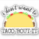 El Pegatina "Bout It Funny", diseñado por Enchantelegante Design Company, presenta un taco de aspecto delicioso junto con el dicho gracioso. Este diseño es un regalo perfecto para quien ame los tacos y los juegos de palabras.