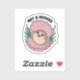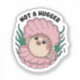 Un ilustracion pegatina de un pez globo con el texto "no un abraza" encima. El pez globo se encuentra en una zona de conchas y está rodeado de algas. El fondo es un degradado azul claro.
