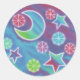 Un cielo nocturno de colores vivos con estrellas brillantes y luna a rayas. Pegatina con un diseño de personalizable púrpura, rosa, azul y verde para que pueda personalizar con su propio texto, imágenes e ideas. Dibujo original de Jess Perry a lápiz de color.