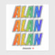 Este divertido, vibrante y emocionante diseño pegatina presenta el nombre común o el nombre "ALAN", con las letras del nombre con un colorido patrón de color gradiente inspirado en el espectro arcoiris. Puede ser un regalo divertido darle a alguien cuyo nombre sea Alan. [~Z0000361]