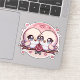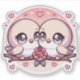 Dos encantadores pájaros coquetos, de estilo chibi, sentados en una rama con un rosa entre ellos, rodeados por un fondo rosa lleno de corazones. Ideal para San Valentín, aniversarios o cualquier ocasión romántica.