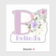 Personalice cualquier elemento con un Pegatina de recorte de diseño floral Nombre e Inicial. El nombre de ejemplo es Belinda.