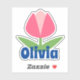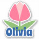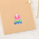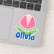flor de tulipán rosa con hojas verdes nombre pegatina, fácilmente personalizado con su nombre.