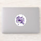 Este divertido pegatina de vinilo con temática de baloncesto presenta una "explosión" de baloncesto de tamaño variado en color púrpura y blanco y de estrellas moradas y grises - un patrón de pequeños puntos de polka blancos cubre la estrella morada - personalizar con el nombre del atleta y número de camiseta - de katz_d_zynes