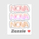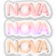 Nombre de Nova en luces de neón. Tres copias - una en un tono rosa, una en una mezcla de amarillo, rosa y morado y otra en amarillo dorado.