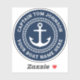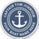 Pegatina con un ancla dentro de un borde de cuerda con nombre de personalizable y nombre de barco envuelto alrededor del borde circular. Color y fuente del personalizable.