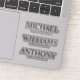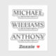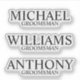 Añada un toque personal a su boda con un pegatina personalizado de corte personalizado. con el nombre y título personalizados del groomsman en estilo clásico de letra serif. También perfecto para el Mejor Hombre, Padre de la Novia y más.