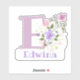 Personalice cualquier elemento con un Pegatina de recorte de diseño floral Nombre e Inicial. El nombre de ejemplo es Edwina.