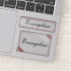 Personaliza tus artículos con stickers que muestran tu nombre en letra cursiva rodeado de dos bordes diferentes. Ambos bordes son de color burdeos y uno de ellos presenta un dibujo de racimos de rosas en dos esquinas.