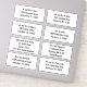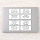 Siempre es un poco difícil tener que escribir nombres y direcciones en sobres, sobre todo cuando tienes que hacer muchas cosas, como cuando mandas tus tarjetas de Navidad o invitaciones de bodas y fiestas de cumpleaños. ¡Esta puede ser la solución que buscas! Pegatinas individuales para sus invitados/destinatarios con 8 nombres y direcciones diferentes, fáciles de personalizar, en un tipo de sans negrita simplista. Simplemente puede cambiar el texto, o si lo prefiere, puede ir un paso más allá y cambiar el estilo y el color del tipo de letra haciendo clic en Opción adicional Personalizar. ¡Tus sobres se verán muy limpios y ordenados!