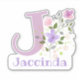 Pegatina Nombre Jaccinda más inicial con diseño floral