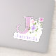 Personalice cualquier elemento con un Pegatina de recorte de diseño floral Nombre e Inicial. El nombre de ejemplo es Jaccinda.