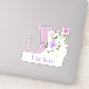 Personalice cualquier elemento con un Pegatina de recorte de diseño floral Nombre e Inicial. El nombre de ejemplo es Jackie.