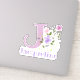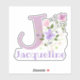 Personalice cualquier elemento con un Pegatina de recorte de diseño floral Nombre e Inicial. El nombre de ejemplo es Jacqueline.
