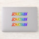 Este diseño pegatina multicolor, apasionante y vibrante presenta el nombre común de "JONATHAN", con las letras del nombre con un colorante inspirado en el espectro de arcoiris colorido. Puede ser un regalo divertido para darle a alguien que se llama Jonathan. [~Z0000361]