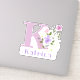 Personalice cualquier elemento con un Pegatina de recorte de diseño floral Nombre e Inicial. El nombre de ejemplo es Katrina.