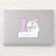 Personalice cualquier elemento con un Pegatina de recorte de diseño floral Nombre e Inicial. El nombre de ejemplo es Leanora.
