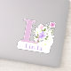 Personalice cualquier elemento con un Pegatina de recorte de diseño floral Nombre e Inicial. El nombre de ejemplo es Linda.