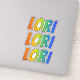 Este interesante, vibrante y divertido diseño pegatina cuenta con el nombre común "LORI", con letras del nombre que tienen un colorido espectro arcoiris como el patrón de coloreado gradiente. Puede ser un regalo divertido darle a alguien cuyo nombre es Lori. [~Z0000361]