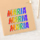 Este divertido, vibrante y emocionante diseño pegatina presenta el nombre común o el nombre "MARIA", con las letras del nombre que presentan un colorido espectro arcoiris como el patrón de color gradiente. Podría ser un regalo divertido darle a alguien que se llama María. [~Z0000361]