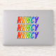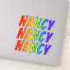 Este diseño pegatina multicolor, apasionante y vibrante presenta el nombre común "NANCY", con las letras del nombre con un colorante inspirado en el espectro de arcoiris colorido. Puede ser un regalo divertido para dar a alguien cuyo nombre es Nancy. [~Z0000361]