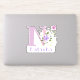 Personalice cualquier elemento con un Pegatina de recorte de diseño floral Nombre e Inicial. El nombre de ejemplo es Natasha.