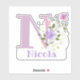 Personalice cualquier elemento con un Pegatina de recorte de diseño floral Nombre e Inicial. El nombre de ejemplo es Nicola.