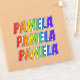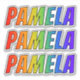Este fascinante, divertido y multicolor diseño pegatina cuenta con el nombre común de "PAMELA", con letras del nombre con un colorido diseño de color inspirado en el espectro del arcoiris. Podría ser un regalo divertido darle a alguien cuyo nombre de pila es Pamela. [~Z0000361]