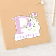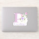 Personalice cualquier elemento con un Pegatina de recorte de diseño floral Nombre e Inicial. El nombre de ejemplo es Penelope.