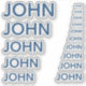 Un nombre sencillo en las tapas azules clásicas de 15 tamaños diferentes. El nombre se puede cambiar con otro nombre relativamente corto. El predeterminado es John. Cada tamaño de nombre se puede utilizar por separado.