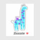 Pegatina Nombre personalizado Turquoise Giraffe Púrpura Por