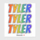 Este vibrante, emocionante y divertido diseño pegatina cuenta con el nombre común de "TYLER", con las letras del nombre que presentan un colorido color gradiente inspirado en el espectro del arcoiris. Puede ser un regalo divertido darle a alguien cuyo nombre de pila sea Tyler. [~Z0000361]