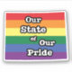 Este colorido diseño presenta el estado de Wyoming construido en un arcoiris.