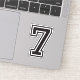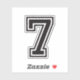 Número siete pegatina. Letra de la escuela de deportes en negro. El alfabeto completo y los números 0-9 están disponibles.