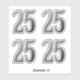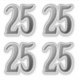 Cuatro pegatinas número 25 de plata de contorno para cumpleaños o aniversario.