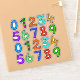 Este paquete de 20 pegatinas de 2 juegos de números dibujados a mano de 0 a 9, presenta patrones simples en colores brillantes. En la tienda LDTreasures también hay disponibles paquetes de pegatinas similares de cumpleaños de hito dibujado a mano y juego de alfabetos.