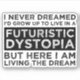 Nunca Soñé Que Habría Crecido Para Vivir En Una Distopía Futurista, Pero Aquí Estoy, Viviendo El Sueño. Diseño divertido para la generación Xers y Millennials que están familiarizados con la ficción y novelas distópicas, películas ciberpunk y post apocalípticas y programas de televisión, y que quieren resistir. El presente puede parecer la sociedad del futuro distópico que vimos a menudo en ciencia ficción y ciencia ficción. Si eres anti-Trump, te importa el cambio climático, la resistencia, el Brexit, el virus Wuhan, Hong Kong y el futuro de nuestro planeta y de nuestro país, ¡entonces este diseño es para ti!