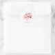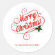 Pegatina o Sello para sobres navideño PERSONALIZADO Un tipo de letra tradicional explica Feliz Navidad. Un solo brote de holly actúa como un niño en el guión. El nombre de su familia o cualquier texto que desee se escribe a continuación. Úsalo como un sello para sobres en tus tarjetas de Navidad o una etiqueta de regalo en tus regalos.
