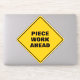 Funny seña clásica de cautela de diamantes amarillo advierte del trabajo en pieza en una gruesa fuente sans serif negra. Perfecto para alguien que trabaja en una línea de producción o que hace un trabajo repetitivo.