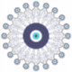 Pegatina con patrones de una mandala circular hecha de símbolos tradicionales azul marino, turquesa y blanco protector de los ojos malignos