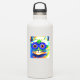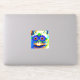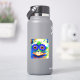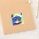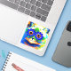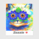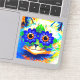 Pegatina con la pintura de animales de Louis Wain Cat Flower Eyes (1860-1939). Un gato arco iris sonríe ampliamente. Las flores azules le cubren los ojos. Un regalo maravilloso para los amantes de los gatos y el arte inglés.