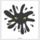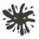 Ojos de gato asomando un agujero negro. Naranja, verde lima, azul y marrón.