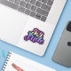 Esta obra de arte muestra un arco iris colorido con las palabras Orgullo Gay.